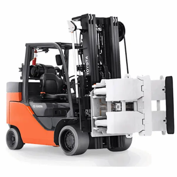 Toyota’s Paper Roll Special forklift is a powerful lift manufactured specifically to maneuver and stack heavy paper rolls. The Paper Roll Special is also one of the most cost-efficient assets for your paper applications, optimized with the Cascade Paper Roll Clamp for the best lifting capacity.
